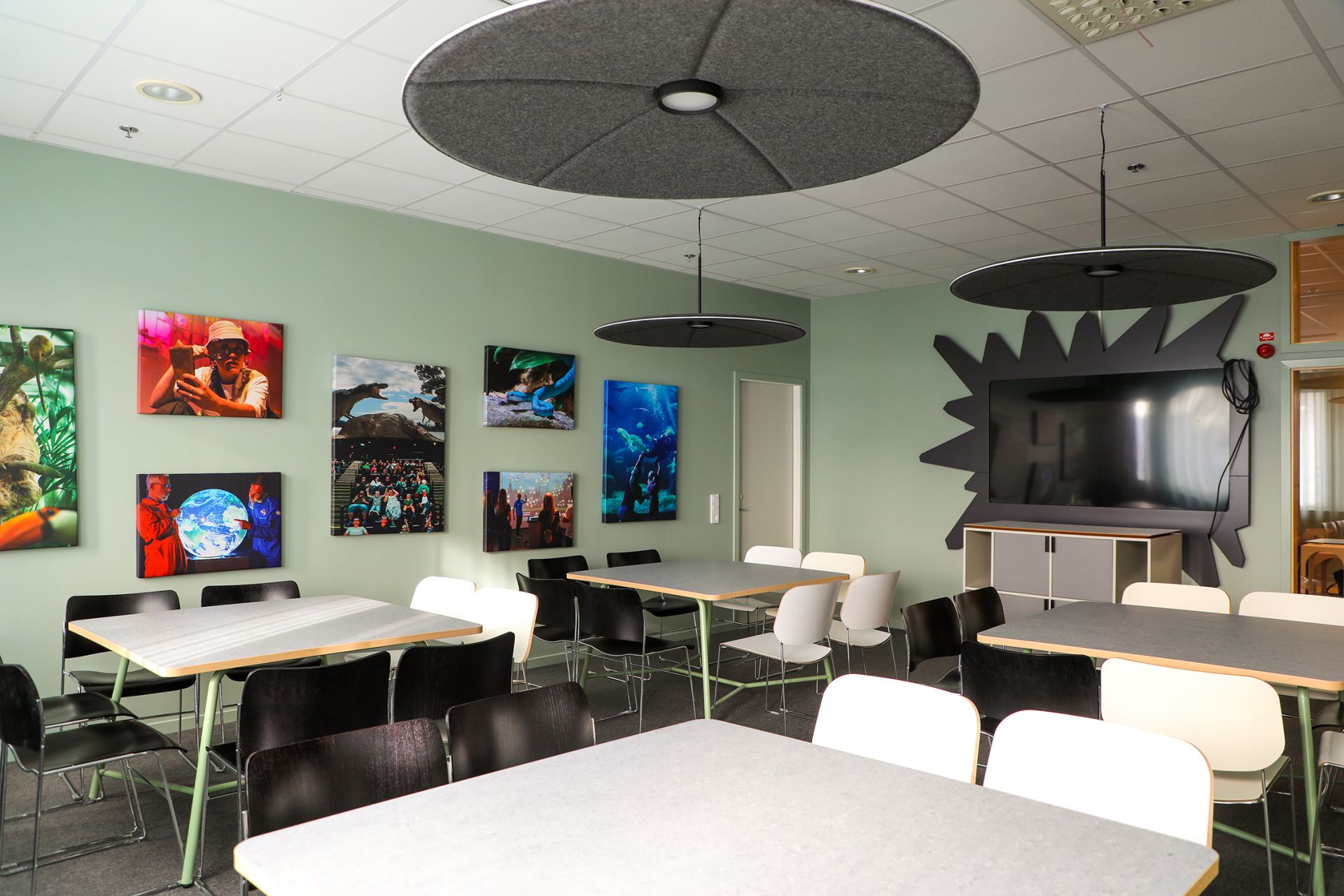 Konferens- och möteslokal för 15-20 personer. Ett rymligt rum med fyra bord, perfekt för workshops. Här kan du och din grupp fokusera och jobba effektivt. Utrustad med skärm och whiteboard.