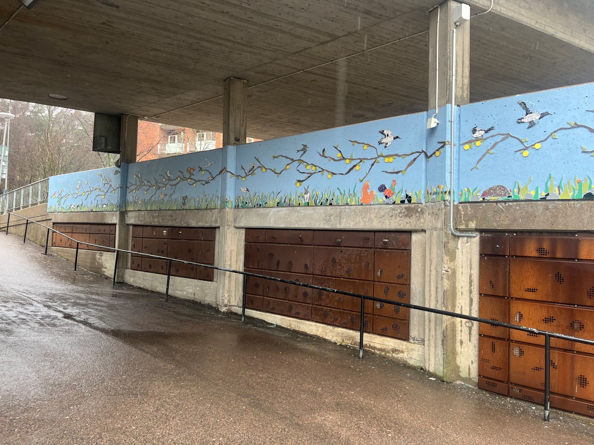 Mosaik i tunneln; naturmotiv med växter och djur utifrån hyresgästernas önskemål.