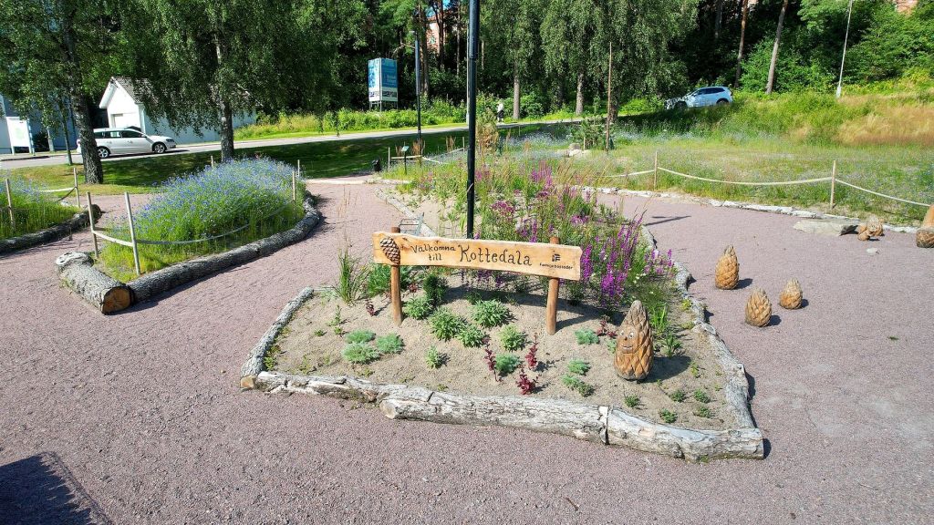 Kottedala vid Kalendervägen – Med biologisk mångfald som fokus har vi skapat en plats som stödjer lokala ekosystem. Kluriga kottegubbar i trä och ängsblommar lockar både barn och pollinerare. En oas som är både estetiskt och ekologiskt värdefull.