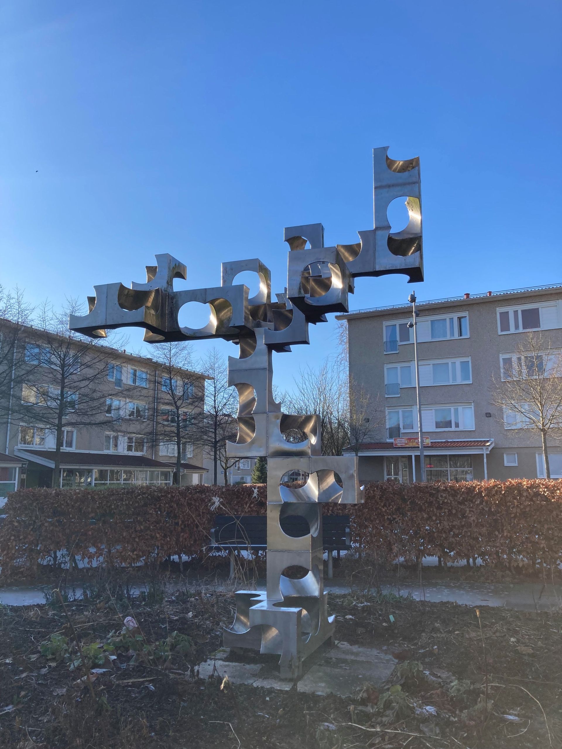 Hjällbogärdet – Metallskulptur av Jöran Sandeberg.