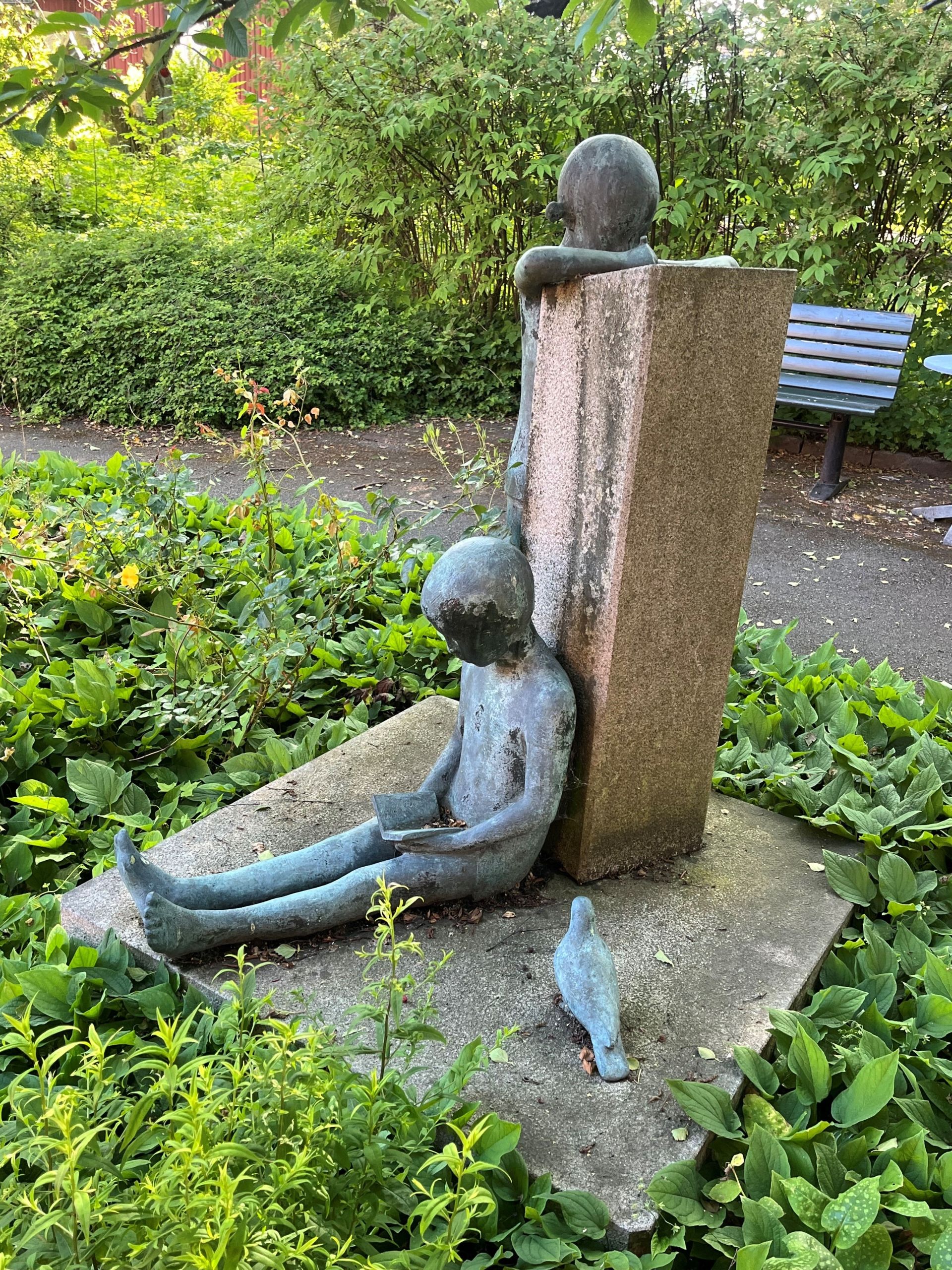 Bronsfigurerna ”Pojken, flickan och duvan”.